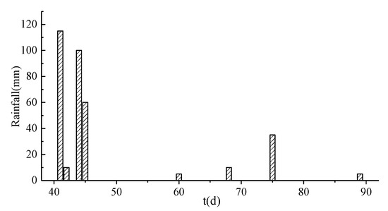 (3) The effect of rainfall on the movement and moving velocity of the ground at the monitoring points was periodic, and the formation of a sliding surface of the slope body was accelerated by the infiltration of rainwater during the rainfall process.