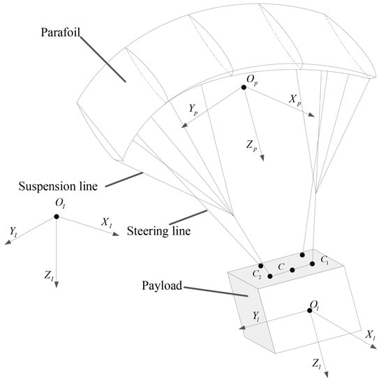 The parafoil and the payload are connected by lines, and the constraint relationships between them are