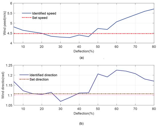 Under conditions of different deflections and wind fields, wind field identifications are conducted, and the results are shown in Table 2.