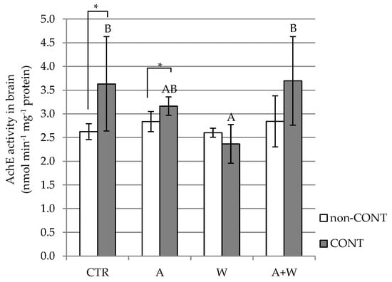 Brain AchE activity in non-CONT and CONT fish is shown in Figure 5.