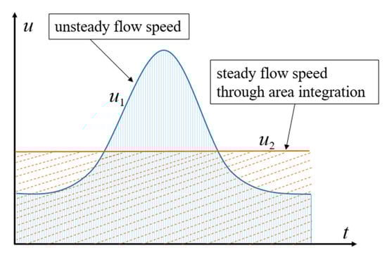 Unsteady flow and steady flow through area integration of the unsteady flow.