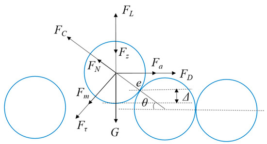 For the unsteady flow, the inertial force Fa was generated due to the flow change. The particles were accelerated or decelerated and it would produce a horizontal inertial force Fa acting on the particle [46,47], as follows: