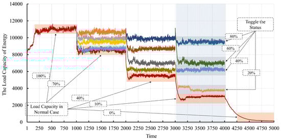 The overloaded energy status of the intelligent lighting system becomes higher than before the previous status based on the ratio of the forgetting status to toggle the sensing devices. For more clarification, we assume the occupancy status of total workers is 10%, which corresponds to 38 workers having left the office while the intelligent lighting system works.