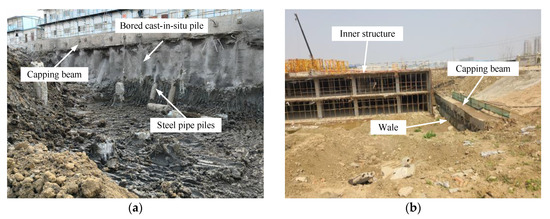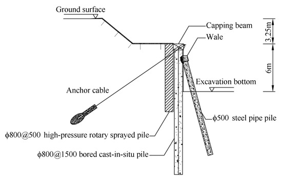 In metropolitan areas such as Beijing and Shanghai, booming populations and a scarcity of urban land lead to excessive congestion. To help alleviate such congestion, cities are tending to build more high-rise buildings and develop the space available underground. This, in turn, is leading to an increase in the number of deep excavation projects being undertaken (for building basements and other underground engineering structures). However, excavation induces soil movement and, sometimes, collapse of the land. This can result in adjacent buildings and utilities becoming damaged and even produce casualties [1,2]. Hence, suitable retaining structures need to be employed in these deep excavations and so engineers are facing severe challenges with respect to the design and construction of excavation support measures.