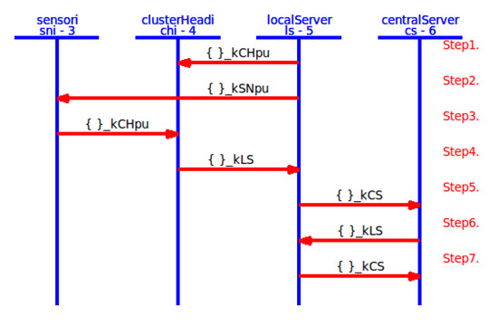 - Communications security: To protect data and information between source and destination, security mechanisms, such as signatures should be applied to prevent an attacker from accessing records transferred between network entities (for example, sensor, Cluster Head (), and Base Station ()/Local Server ()). These mechanisms should resist attacks such as disclosure, alteration, replication, collision, preimage, and impersonation of medical records transmitted. The communication channel should be protected end-to-end at both the wireless level and on the Internet through the integration of a set of security mechanisms and privacy [6,7].
