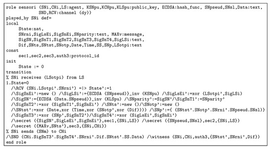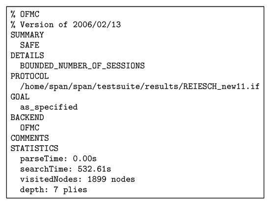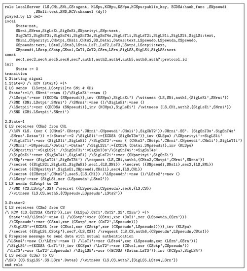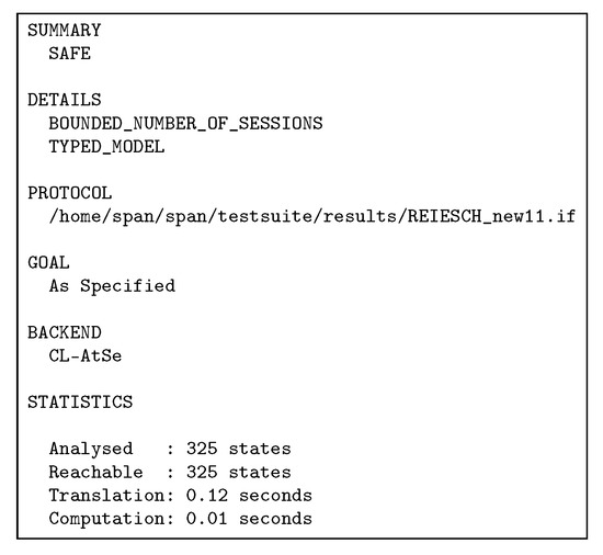 - Team, T.A. AVISPA v1.1 User Manual. Available online: http://www.avispa-project.org (accessed on 25 June 2019).