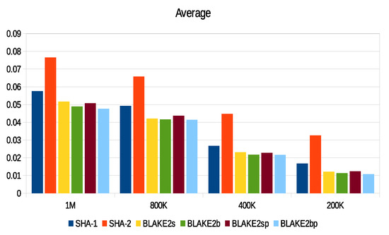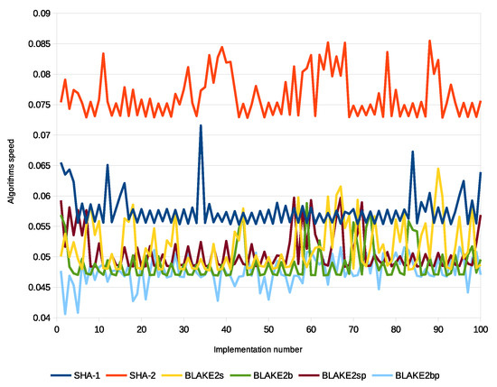 - Aumasson, J.P.; Neves, S.; Wilcox-O’Hearn, Z.; Winnerlein, C. BLAKE2: Simpler, smaller, fast as MD5. In International Conference on Applied Cryptography and Network Security; Springer: Berlin, Germany, 2013; pp. 119–135. [Google Scholar]