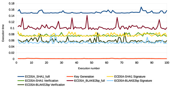 The homomorphic aggregate signature scheme is important to support the performance of network devices by making the intermediate nodes such as perform a single signature process for all members’ signatures of the group rather than the signature verification process (the ECDSA verification process consumes more time and energy than the signature process) [68]. In addition, homomorphic increases security measures in preventing the tracking of patients’ information and data or changing signatures of legitimate network devices [69].