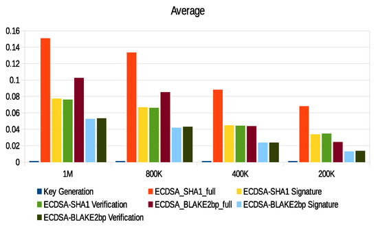 Fan and Gong [17] implemented ECDSA on Micaz motes with the binary field (163-bit). They improved signature verification via cooperation of the adjacent nodes. ECDSA’s implementation was also presented in the sensor node (IRIS) [18]. However, because this node supported 8-bit of the microcontroller, the author modified the SHA1 code from the 32 bits original to 8 bits. Through implementation, the original algorithm is better in size and time than the modified algorithm. The author explained the possibility of using the ECDSA algorithm with the sensor node (IRIS) held 8-bit microcontroller.