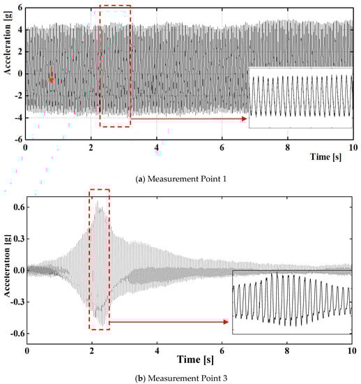 The Hilbert–Huang transform (HHT) method was used to analyze the characteristics of the vibration signals in the joint time–frequency domain. The HHT method is a self-adaptive time–frequency analysis method suitable for nonlinear and unstable signal processing proposed by Huang [44,45], which mainly includes two parts: EMD empirical mode decomposition and Hilbert spectrum analysis.