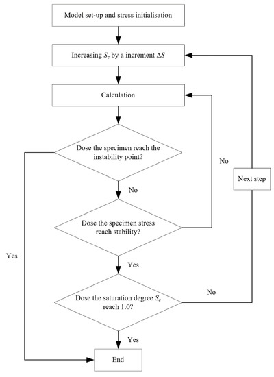 - The calculation is performed until the stress in the model begins to stay constant, which is regarded as a sign that the specimen has reached mechanical stability. However, if the specimen experiences overall instability during calculation, the calculation will be terminated and the simulation is completed;