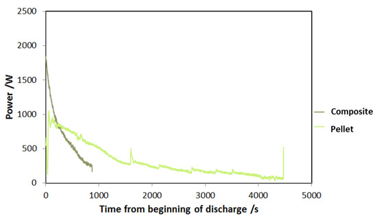 Dynamic curve of power during discharge for the two adsorbers tested.