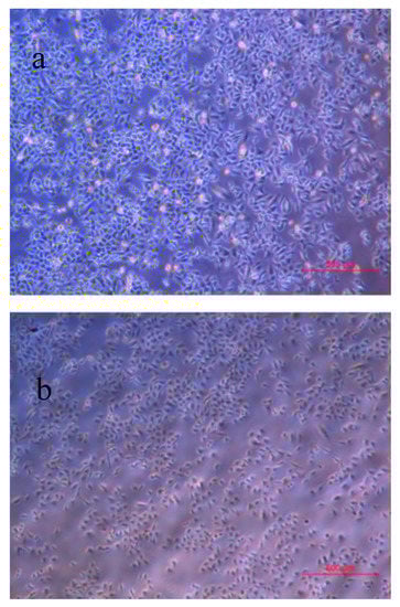 Images of the A549 cells in control (a) and catechin (600 µmoL) treatment (b) groups after 24 h of incubation.
