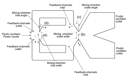 - Bobusch, B.C.; Woszidlo, R.; Krüger, O.; Paschereit, C.O. Numerical Investigations on Geometric Parameters Affecting the Oscillation Properties of a Fluidic Oscillator. In Proceedings of the 21st AIAA Computational Fluid Dynamics Conference, San Diego, CA, USA, 24 June 2013; p. 2709. [Google Scholar]