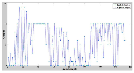 If the quantity of hidden layer nodes is too small, the complex mapping relationship cannot be established by the BP neural network, and the error of network prediction is relatively larger. On the other hand, when the number of hidden layer nodes is too high, the learning time will increase, which may cause the prediction of training samples to be accurate, but the error of prediction samples will be larger. In general, the error of network prediction decreases and then increases with the increase in the number of nodes. According to Table 3, when 14 hidden layer nodes were selected, the error was the minimum.