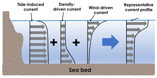 - Samolyubov, B.I.; Ivanova, I.N. The evolution of velocity profiles and turbulent viscosity in a system of currents with wind-induced and density flows. Mosc. Univ. Phys. Bull. 2014, 69, 426–432. [Google Scholar] [CrossRef]