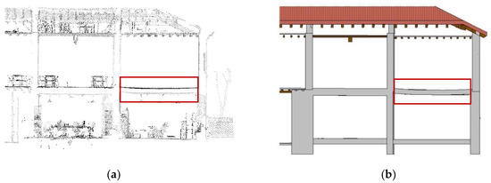Example of survey of a flexural anomaly in a floor beam (a) laser scanner survey; (b) section redrawing.