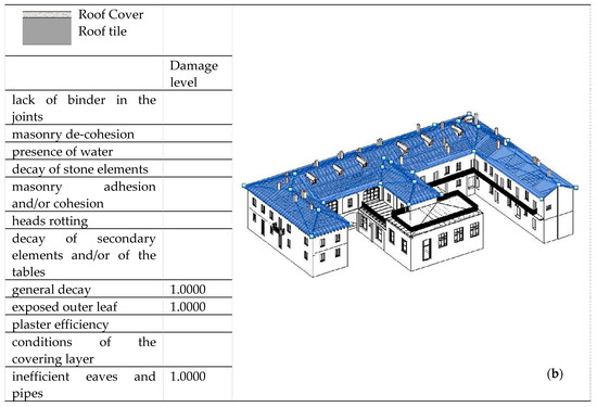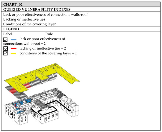More than one of the specific vulnerabilities listed in Table 4 may be present in the building elements. Now, if each element were affected by more than one form of specific vulnerability, it would be interesting to have an immediate graphical feedback of its vulnerabilities [13,14,15,16].