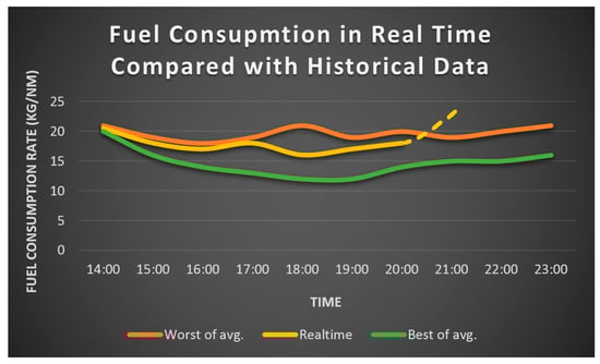 The most important insight is perhaps the associations made from the “first diamond” to the “second diamond” informed by the findings of the ethnographic studies. The idea and need of using big data analytics for better decision support for EE optimization in this context was much appreciated. It may introduce some changes that is important for the system improvement. The findings discovered that (at least) the current design and implementation of the tool had an intrinsic lack of capacity to enable improved operational practice regarding EE. This actual deficiency of the EE monitoring tool, although was merely a part of the sociotechnical factors, matched the strengths and advantages of artificial intelligence (AI) technologies and machine-learning techniques well. For example, the technologies will have the computational power to analyze data and support the learning and understanding of actual fuel consumption without adding extra operational workload upon ship personnel. Furthermore, the ethnographic research suggested some strategic direction that was worth further investigation, e.g., how to use historical ship sensor data to predict fuel consumption in a similar condition and provide easily understandable information to support decisions so that it may be possible for the ship operators to understand which factors are influencing the prediction, to what extent and how to adapt operational practice in situ. Additionally, the ethnographic research also elucidated some features that likely play significant roles in machine-learning modelling, such as speed, course, locations, wind, fuel consumption. Some studies used physics-based model simulations to estimate ship performance [] and they usually did not integrate weather information into the modelling which will likely influence the prediction capability when used in a real voyage environment.