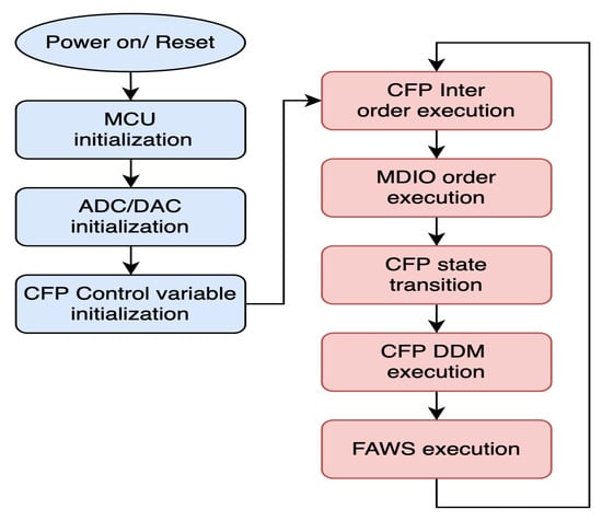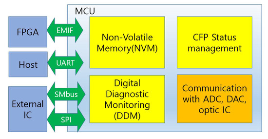 The CFP firmware is ported to the CFP hardware board for operation. Therefore, this section describes the hardware structure of the CFP used in the firmware design. Figure 4 is a block diagram of the entire hardware architecture.