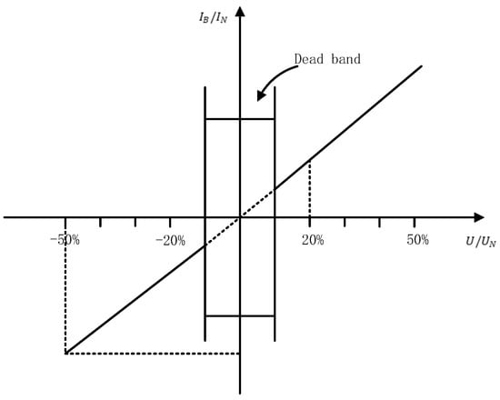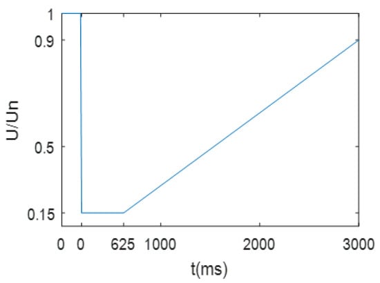 In the past, the penetration level of wind energy was extremely small compared with conventional generation systems [9]. Therefore, wind turbines were allowed to disconnect from the power grid during voltage dips to avoid overcurrent. However, with the penetration of wind energy in electrical power systems increasing, a sudden loss of wind power during voltage dips can result in control problems of system frequency and voltage, which leads to a system collapse in the worst case [10,11]. Hence, it is ideal to make wind turbines stay connected to the power grid and provide support during transient periods. Therefore, the LVRT capability in wind turbines is now mandatory. With emphasis on the LVRT capability of DFIG-WTs, many countries updated their grid code requirements (GCRs). The German LVRT grid criteria are mostly preferred over other GCRs in practical applications [1]; they require that (1) wind turbines shall remain connected to grid for at least 0.65 s after fault inception, (2) the permitted fault voltage is 15% of its rated voltage, and (3) the voltage should recover to 90% of its rated voltage within 3 s after the clearance of faults. According to the GCR for LVRT, wind turbines should have the ability to ensure continuous operation during voltage dips, and the voltage should be kept above the curve shown in Figure 2. In addition, most GCRs require reactive current injection during voltage dips. The E.ON requirement for voltage support proposes that wind turbines should provide reactive current when the voltage reaches the dead band limit, and larger reactive current injection is needed when the voltage dips go deeper, as presented in Figure 3. The reactive current support in response to severe voltage dips must be achieved within 20 ms of fault detection [12].