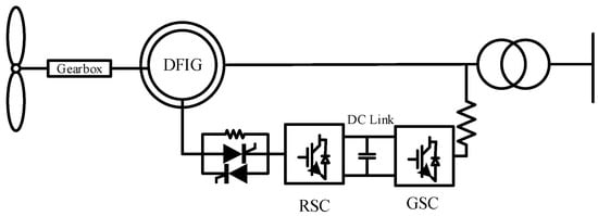 The SDBR comprises a resistor and a paralleled IGBT circuit. Generally, the SDBR is applied in series with line to restrain current during disturbances [40]. In a DFIG, the SDBR is installed between the stator and the power grid, as shown in Figure 13. By dynamically inserting a resistor in the stator, the SDBR can increase the terminal voltage during grid voltage dips. In addition, the destabilizing depression of electrical torque and power can be restricted [41]. However, when a traditional SDBR is activated, the back-to-back converter has to be disabled due to the hardship in synchronizing stator voltage, and the variable frequency switching scheme may result in undesirable voltage quality [42]. To solve these problems, a modulated series dynamic braking resistor (MSDBR) was proposed, which comprises a high-power braking resistor and two parallel IGBTs for each phase [43]. The MSDBR is also connected in series with the stator and grid, and this device is controlled by the fixed frequency Pulse-Width Modulation (PWM) signals to dissipate excessive power and maintain the terminal voltage magnitude in a desirable range.