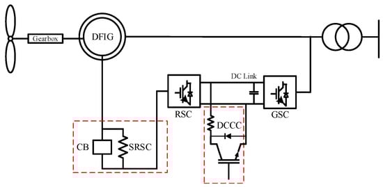 A coordinated control approach which consists of a series rotor-side crowbar (SRSC), DC-link capacitor crowbar (DCCC), and circuit breaking (CB) was proposed in Reference [31]. In this scheme, the SRSC is in parallel with CB, and it connects in series with rotor windings and the RSC. The DCCC is connected in parallel with the DC-link capacitor with the function of restricting DC-link overvoltage. Figure 8 shows the configuration of the coordinated control approach. In steady-state conditions, the rotor is connected with the RSC through CB, and the normal operation of the generator can be ensured. During grid voltage dips, the SRSC and DCCC operate in coordination to protect the RSC and DC-link capacitor. Furthermore, the RSC can be connected with rotor windings through the SRSC and maintain operation to provide control efforts.