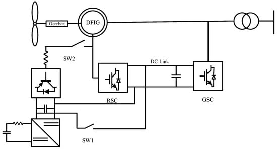 Furthermore, a configuration which combines MSDBR with a parallel integrated capacitor was proposed in Reference [44] to improve the performance of DFIG-WTs during the transient period. Due to the application of the proposed hybrid control scheme, the induced overvoltage in the stator will not cause the converter system to lose control. As a result, rotor overvoltage can be limited. At the same time, the DC-link capacitor charging current can be controlled to restrain DC-link overvoltage.