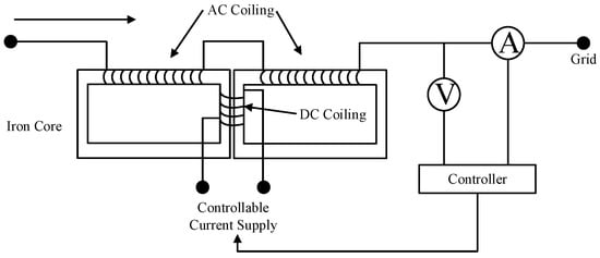 The saturated-core fault current limiter (SCFCL) is another modified FCL topology which was proposed in Reference [8]. The SCFCL is mainly composed of a superconducting DC coil and a coupling transformer in which AC coils are embedded in a saturated iron core. The DC coil is located between two limbs of AC coils, as shown in Figure 16. In normal working conditions, the impedance of the SCFCL is negligible due to the saturated iron core. After a fault occurs, abruptly increased current flows through AC coils, resulting in the iron core becoming unsaturated. Therefore, the impedance of AC coils increases quickly, and the fault current can be restricted. The installation of an SCFCL on the stator side, as shown in Figure 17, provides flexibility in stator resistance. Due to the specific characteristics of the SCFCL, its external installation has no resistance under normal conditions but provides a high resistance during transient periods to restrain stator overcurrent and prevent voltage dips in a DFIG [53].
