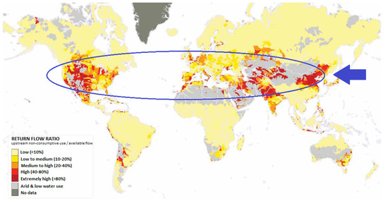 Global return flow ratio, Reproduced with permission from Gassert, F et al., published by city, country, 2005 [7].