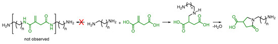 - Paytash, P.L.; Sparrow, E.; Gathe, J.C. The Reaction of Itaconic Acid with Primary Amines. J. Am. Chem. Soc. 1950, 72, 1415–1416. [Google Scholar] [CrossRef]