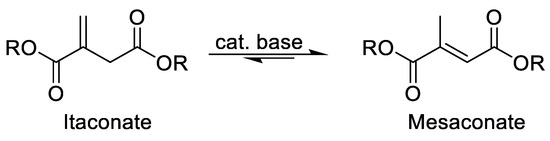 Based-catalyzed isomerization of an itaconate ester to the mesaconate ester.