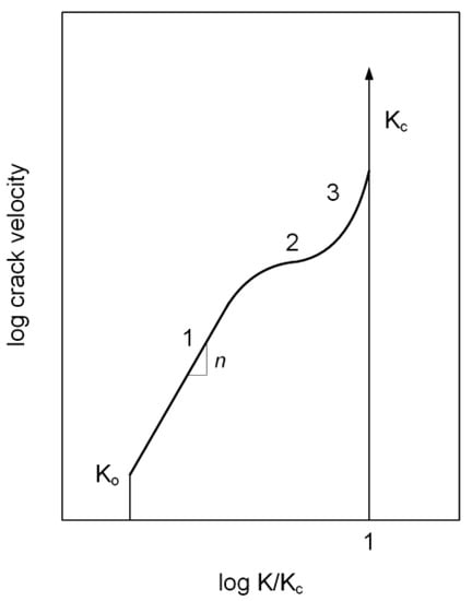 The empirical power law relationship can describe the subcritical crack growth as follows [2,7]:
