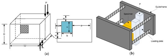 During the test, a guide frame was used to prevent the buckling and bending of the specimen. The guide frame also reduced the lateral movement of the specimen and allowed the propagation of the fracture under in-plane shear failure. To reduce the friction, Teflon sheets were positioned between the specimen and the guide frame.
