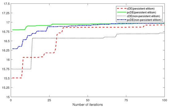- According to the persistent elitism version, each group compares the generated offspring with the elite, and obtains a new elite and updates the according to the rules mentioned in Section 2.