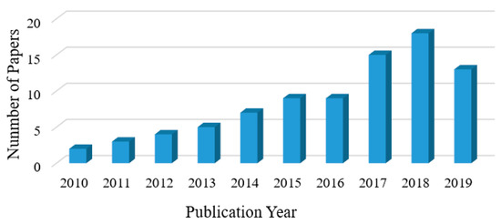 Figure 4 shows the distribution of research papers by year of publication between 2010 and 2019. As can be noted in Figure 3, it is apparent that publications related to DRS steadily increased between 2010 and 2014, and rapidly increased between 2017 and 2019. This is a clear proof that the field is active and gaining more interest among various researchers and practitioners.