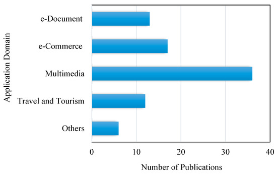 It is interesting to note that the gain of tracking concept drift varies from one domain to another [22]. As could be seen in Figure 5, the findings of our review indicated that the most common application domains where the dynamics-based model is applied are broadly categorized as multimedia (Movies and Music), e-commerce, e-documents, travel/tourism, and places. Among all the application domains, the studies related to multimedia fields (36 out of 87 research papers, or 41%) and e-commerce (17 out of 87 research papers, or 20%) had taken the majority of the publications. While few of the studies were related to other domains such as Travel, Tourism, and places (12 out of 87 research papers, or 14%), and others (6 out of 87 research papers, or 7%, respectively). This could be interpreted as a result of a larger number of available sources of multimedia data for practical applications more than other application fields. Specifically, the Movie Lens dataset (www.movielens.org) provides a rich quality data with time information needed to evaluate the dynamics-based model performances and are freely accessible, which explains the reason for more DRS researches in movie fields than in other fields. Table 4 presents the domains of application with their incorporated concept drifts that we discovered in the selected studies. Based on the review, the incorporated concept drifts in the DRS can be viewed as any changes that occur either from the side of users, items or system environment. The tracked change attribute can either be of a short term or a long term change duration.