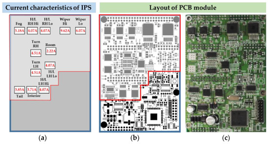 It should be noted that the SJB PCB module developed in this study was designed to support low-voltage (13.5 V) automotive electronic loads by miniaturizing and decreasing the weight of existing JBs, improving the vehicle stability by incorporating various fault diagnosis and monitoring functions, and increasing the data transmission stability by introducing CAN communications.