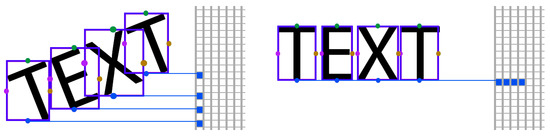The top and bottom midpoints of the AABBs’ sides are the only points we need to rotate in order to find the skew angle. We illustrate the mechanism in Figure 5.