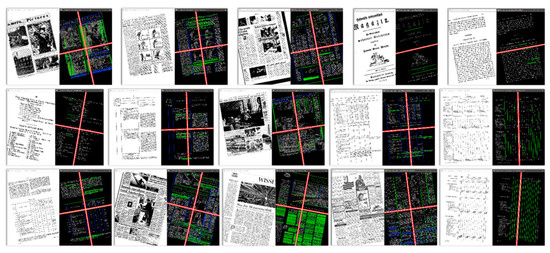 - Kanai, J.; Bagdanov, A.D. Projection profile based skew estimation algorithm for JBIG compressed images. Int. J. Doc. Anal. Recognit. (IJDAR) 1998, 1, 43–51. [Google Scholar]