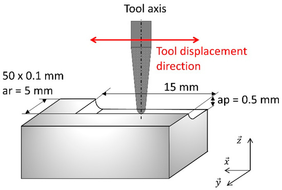 A four axis (X, Y, Z, A) milling center (Lyra-GACD prototype) is used to mill all the samples. The experiments are performed in end milling mode at a constant spindle speed of 60,000 RPM. End milling mode is when the end tip (not the flank) of the tool is used to mill the surface (Figure 2). The milling center is warmed up before milling, if necessary (axis and spindle thermal stabilization). During milling, a coolant is sprayed on to the tool-biomaterial contact area at a constant coolant flow rate.