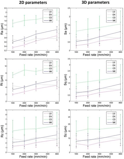3.3. Surface Roughness vs. Feed Rate