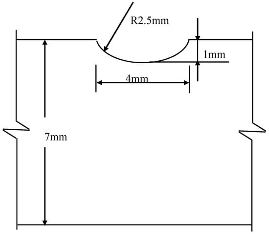 Steel wires with a semi-ellipsoidal notch, trapezoidal notch and V-notch are selected to investigate the influence of notch shape on corrosion fatigue performance of steel wire. The depth and width of the three notches are the same, as shown in Figure 19.
