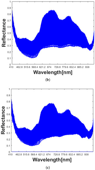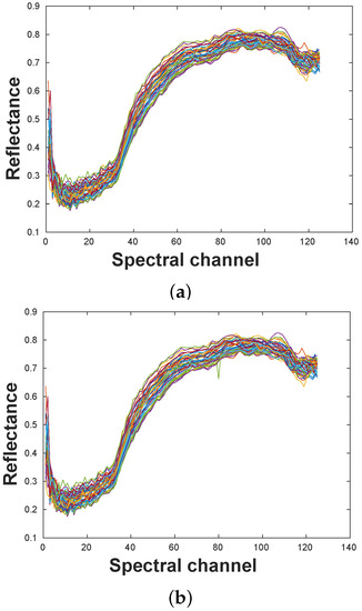 After image acquisition, the data from the reference images were used to perform a radiometric calibration of the raw spectral signature of each pixel of the HSI cube as suggested in [13].