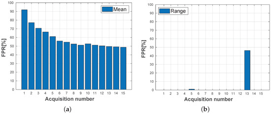 for the remaining of the acquisitions. Here n is the total number of acquisitions. The normal assumption makes sense due to the central limit theorem since all ’s, are averages over a large number of observations. Note that this means that we perform the training procedure by leaving one out cross validation. In the description above, the mean is chosen as parameter, but we have also implemented and performed our testing procedure for the median, the standard deviation and the range. We do this since these parameters can better describe certain aspects of a distribution and may therefore capture different types of changes. In practice, we will therefore typically test all these parameters for potential changes. For parameters other than the mean, Equation (1) will be an approximation that may be violated in practice. Equation (2) will, however, still be a reasonable approximation for all parameters due to the central limit theorem, but will sometimes only hold approximately.