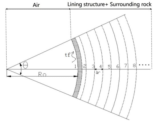 - There is no internal heat source in the medium of each layer of the tunnel. The heat transferring mode between the tunnel lining and surrounding rock is heat conduction and that between the lining and the air in the tunnel is heat convection. Heat radiation is neglected because of its relatively small magnitude [12].