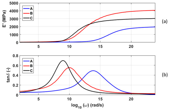 34], which allows to shift the results measured at different temperatures. For each polymer, the real part of the Young’s modulus and the tan