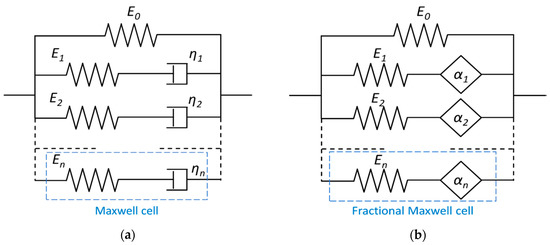 35]. Maxwell cells are composed of a spring and a dashpot arranged in series, while the fractional Maxwell element is obtained by replacing the dashpot elements with the so-called spring-pot elements.
