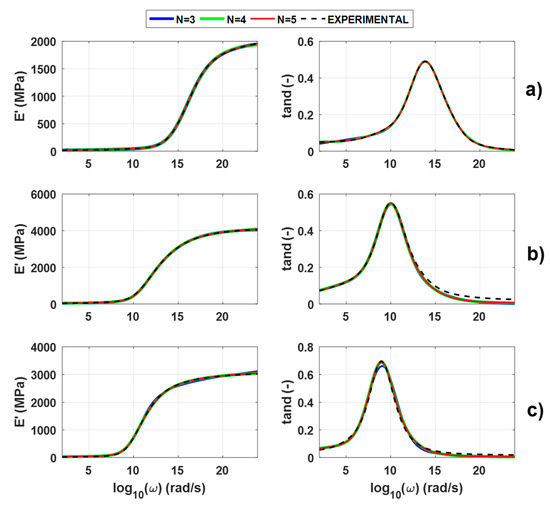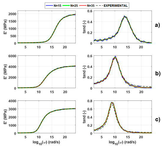 32], limited to the case of the GM model. Furthermore, once the best model formulation has been discovered, a further study on the minimum amount of experimental data and their distribution within the frequency domain, necessary to correctly reproduce the materials’ viscoelastic behavior in a wide frequency range with an acceptable accuracy, has been carried out.
