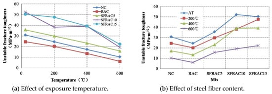 Effects of exposure temperature and steel fiber content on unstable fracture toughness [13].